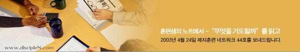 - 이 글은 사랑의교회 어느 제자훈련생의 훈련노트에서 발췌한 글입니다.